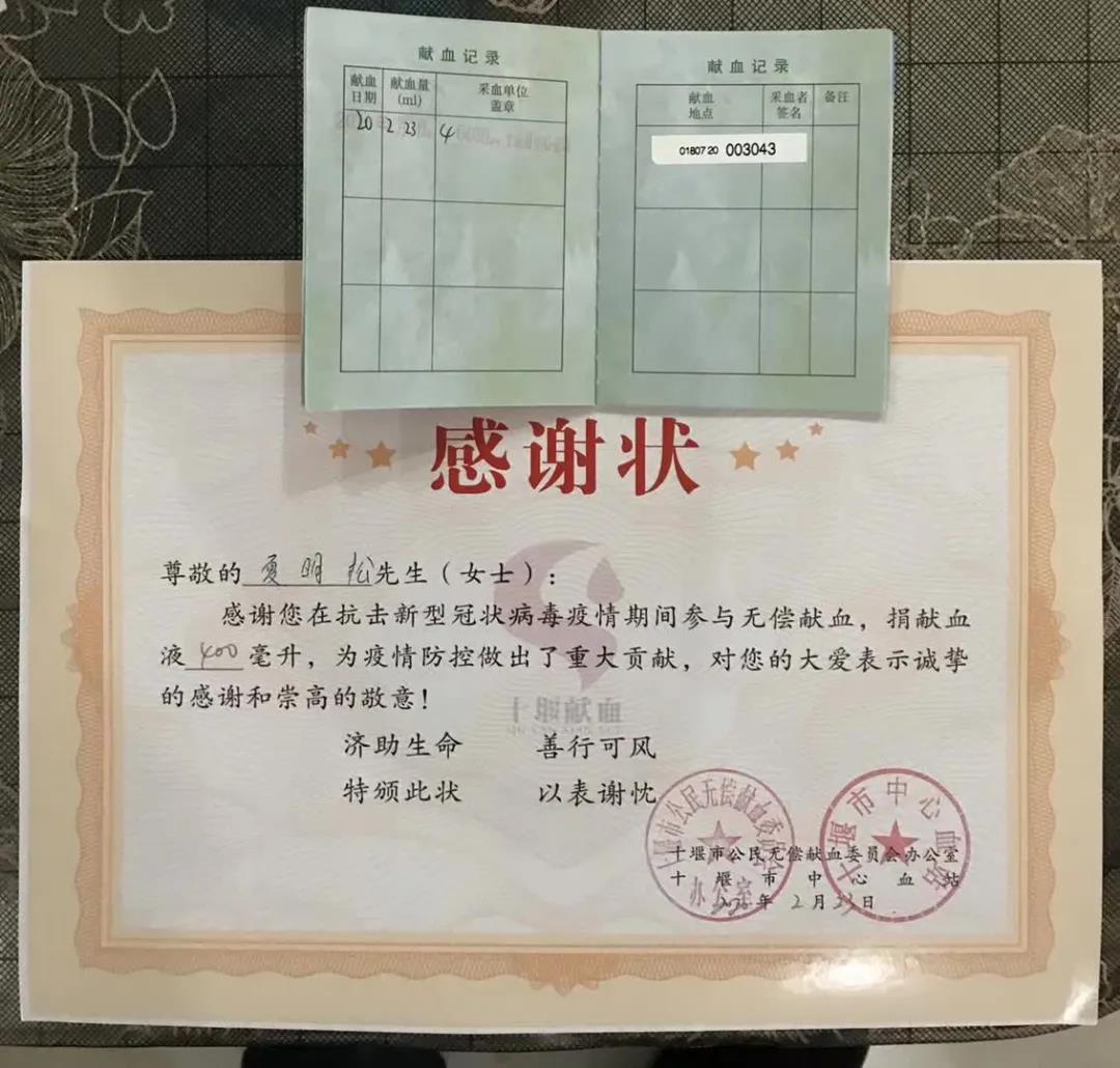 “血液庫存已經(jīng)告急,臨床血液供應(yīng)面臨著嚴(yán)峻考驗(yàn),疫情中的重型感染患者、孕產(chǎn)婦、血液病患者、惡性腫瘤、意外受傷者等急需用血的病人,他們的生命健康正在受到威脅……”當(dāng)看到十堰市防控指揮部發(fā)出的緊急通知,正在社區(qū)做志愿工作的夏明松再也坐不住了,他向社區(qū)請了一小時(shí)的假,立刻趕往十堰市中心血站加入到無償獻(xiàn)血的隊(duì)伍中。