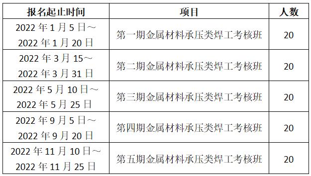 2022年特種設(shè)備焊接操作人員考試計(jì)劃