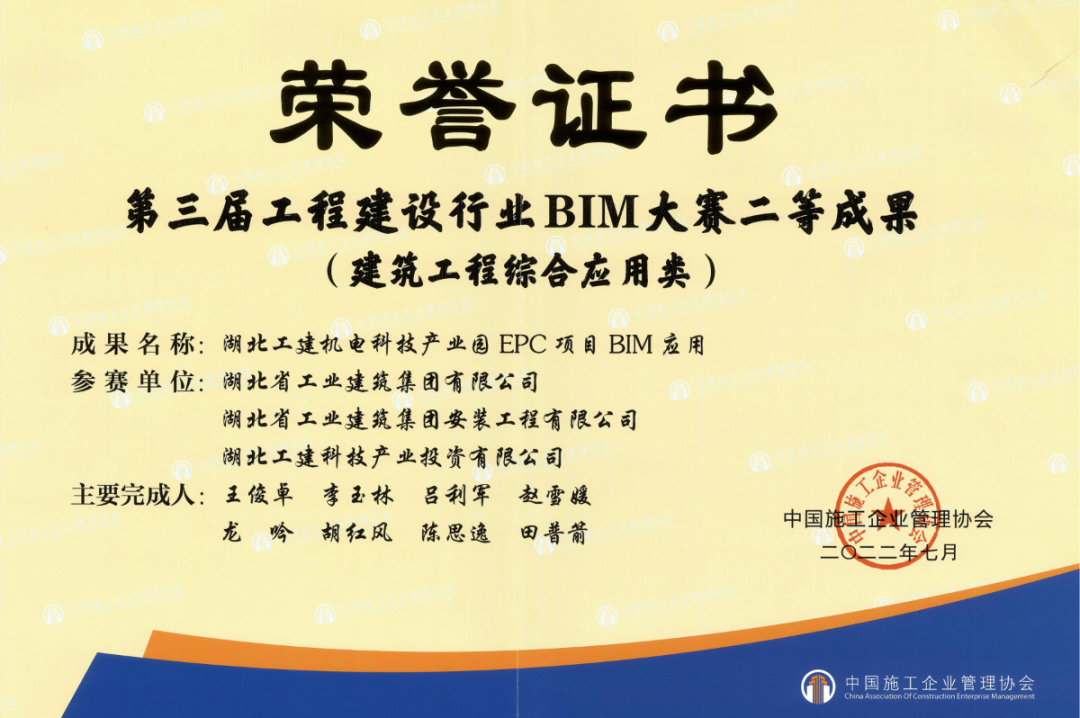 • 湖北工建機電科技產業(yè)園項目榮獲“第三屆工程建設行業(yè)BIM大賽”二等成果獎