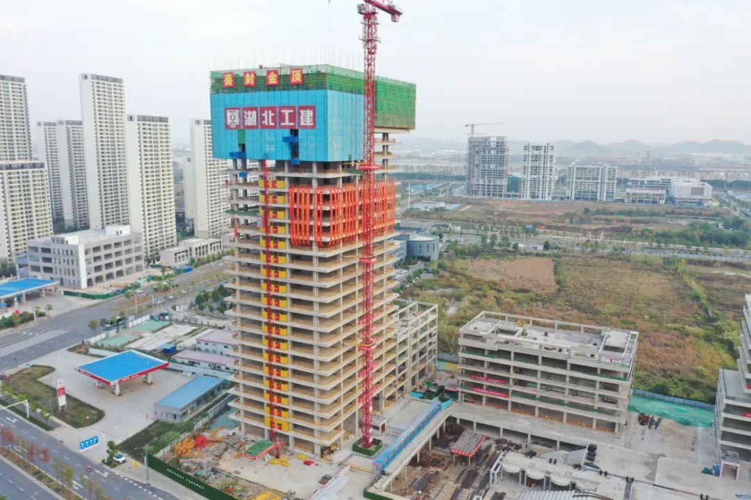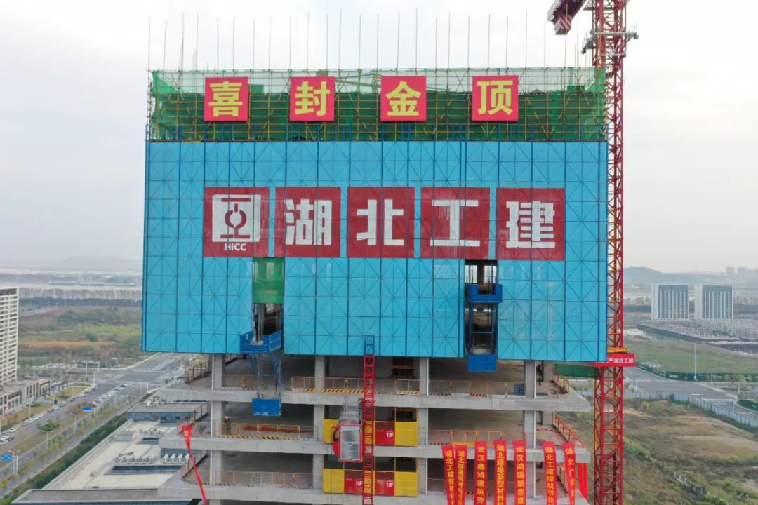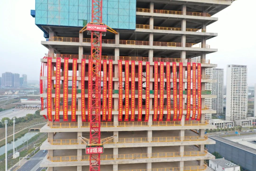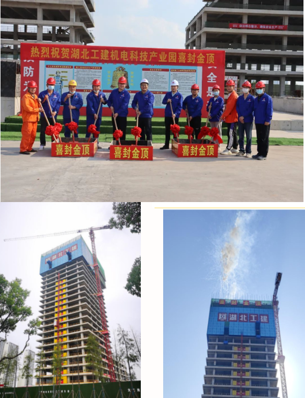 喜封金頂!湖北工建機(jī)電科技產(chǎn)業(yè)園項(xiàng)目1#樓封頂儀式圓滿成功