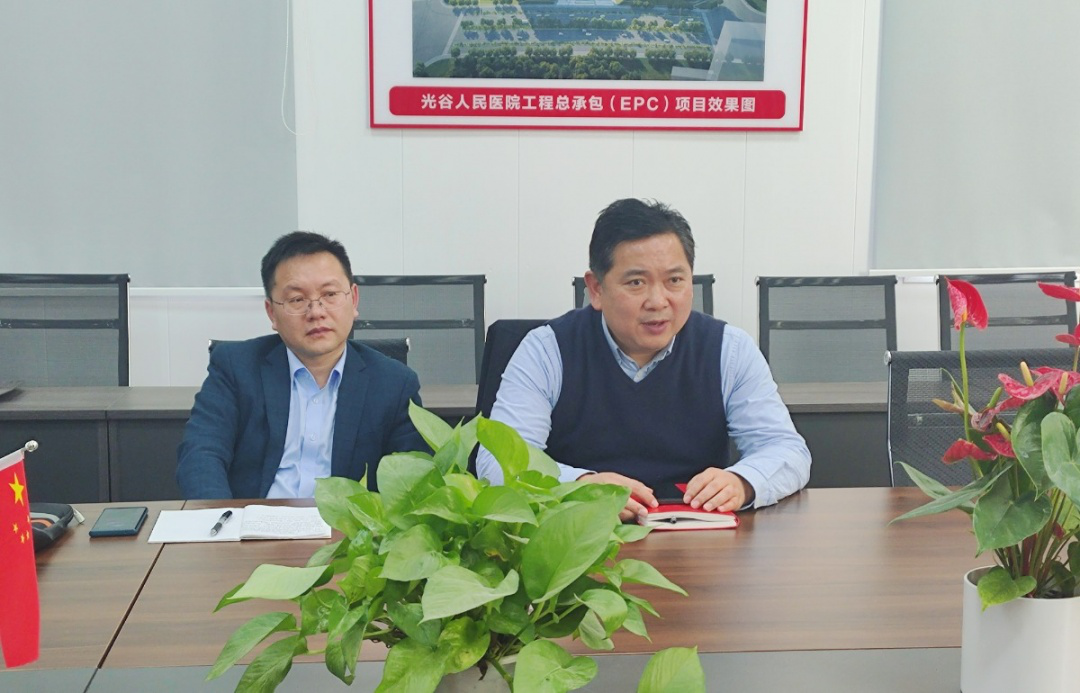 3月6日,黨委副書(shū)記、總經(jīng)理王偉華一行到光谷人民醫(yī)院項(xiàng)目調(diào)研指導(dǎo),督項(xiàng)目、抓進(jìn)度、解難題,深入了解項(xiàng)目進(jìn)展情況并召開(kāi)座談會(huì)。